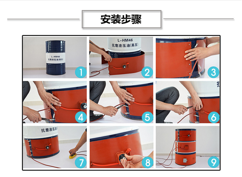 通過加熱使桶內(nèi)的液體、凝固物容易取出,如桶內(nèi)的粘接劑、油脂、柏油、油漆、石蠟、油和各種樹脂原料,通過桶體加熱,使其粘度下降均勻,減輕泵的功力,因此,此裝置不受季節(jié)影響可常年使用。油桶加熱帶表面安裝傳感器,可調(diào)式溫控,溫控范圍在30℃~150℃。